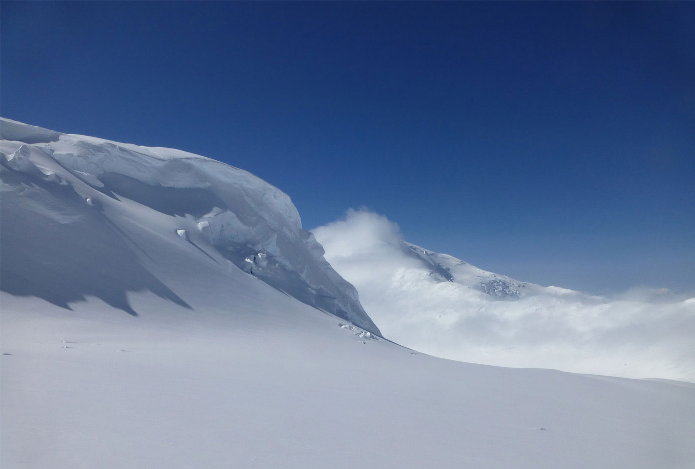 front nähert sich bedrohlich. Ein gefährlicher Abstieg liegt vor uns.